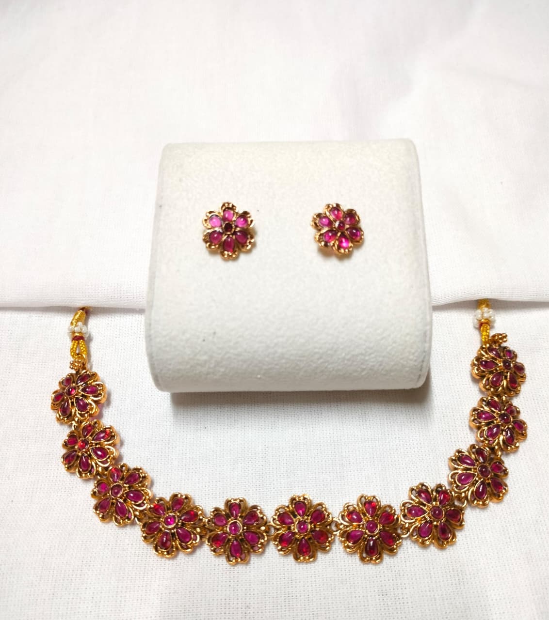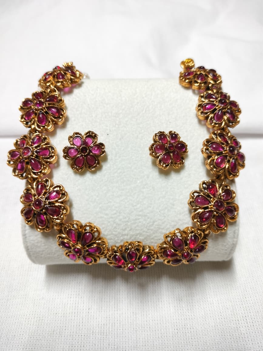 Floral chocker offers a timeless and charming look with the delicate beauty of nature paired with matching earrings.